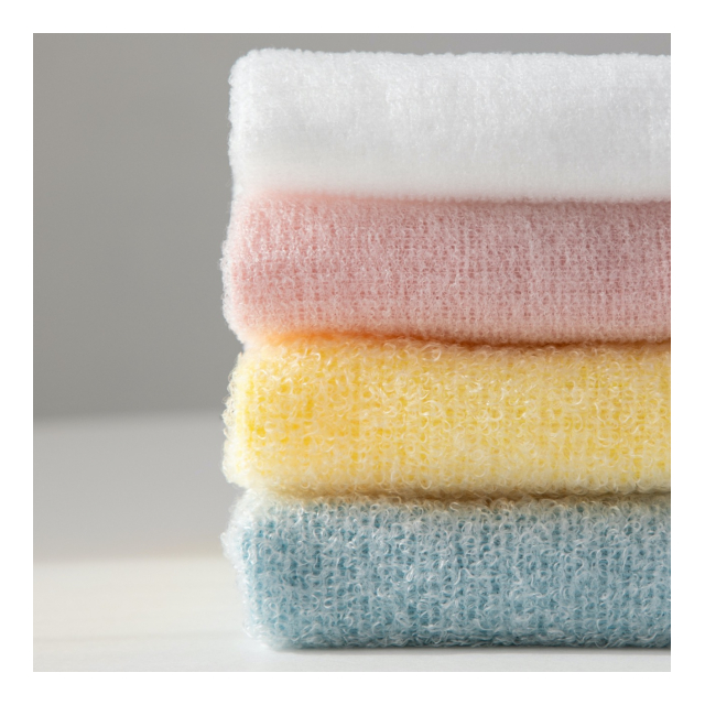 ・もこもこ泡 たっぷり泡立つ「豊潤もこもこ泡」植物由来のポリ乳酸繊維が、空気を多く取り込み、豊かな泡立ちですっきりした洗い心地(イエロー/ブルー)