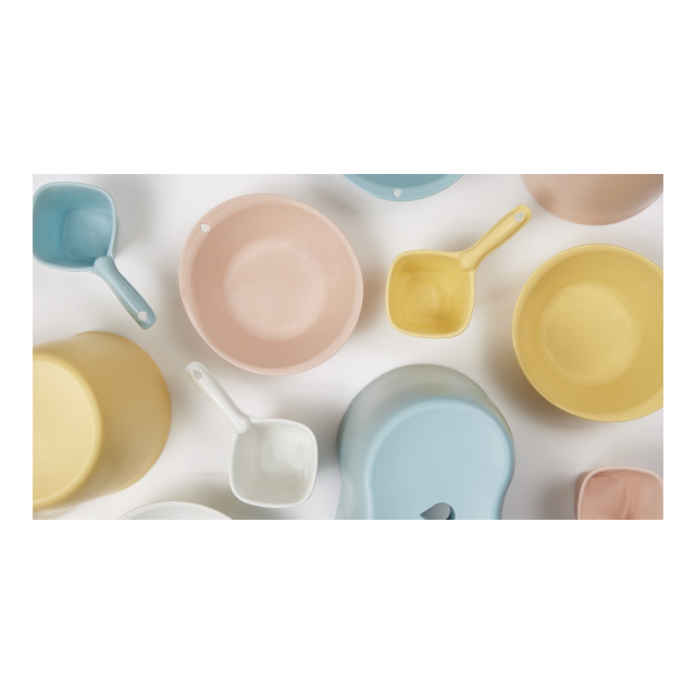 まるで陶器のようなやわらかさを持ち合わせた浴用品がお風呂の中にやさしさと温かさをプラスします。