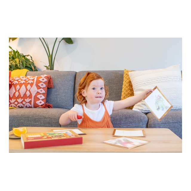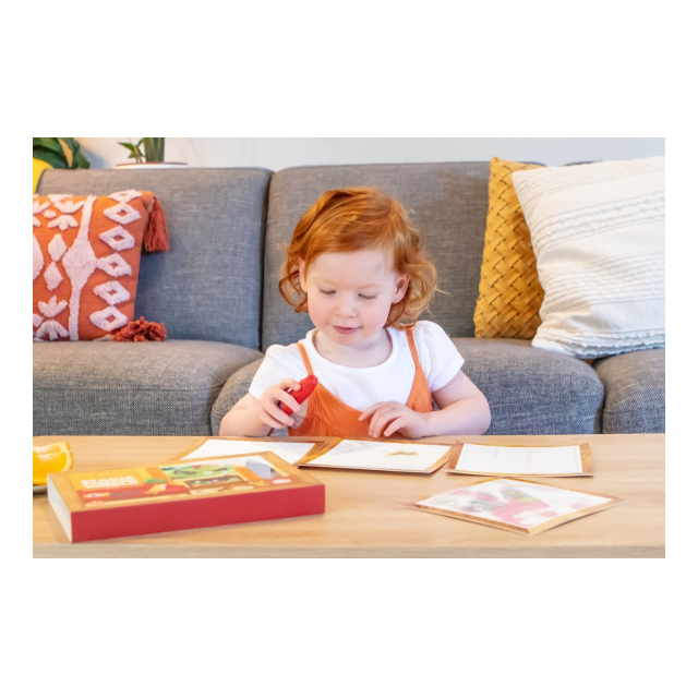 水で濡らすと絵が浮き出てくる不思議なぬりえです。付属のブラシのボトルに水を入れてお絵かきすると、イラストが浮かび上がってきます。乾けばまた白く戻るので何度でも遊べます。ペイントカードの裏には「見つけてみよう」と、いくつかのアイテムのお題が描かれています。