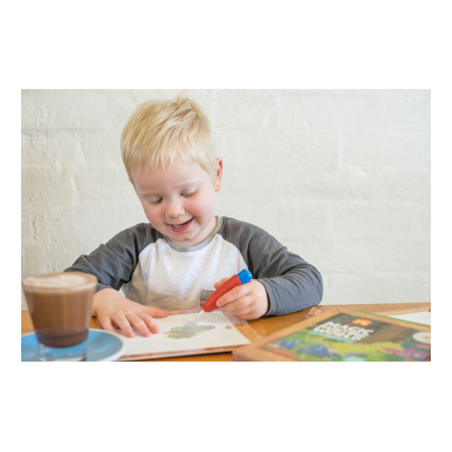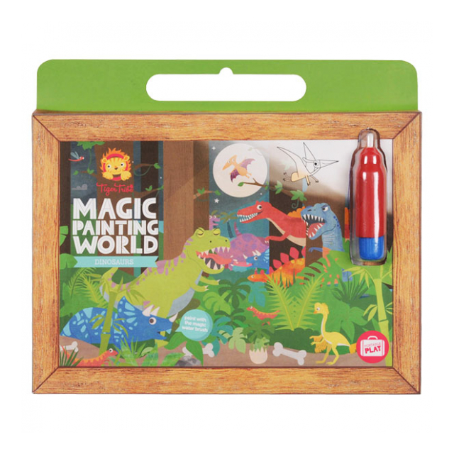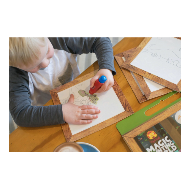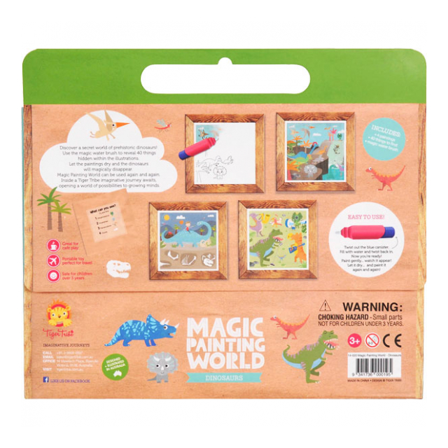 水で濡らすと絵が浮き出てくる不思議なぬりえです。付属のブラシのボトルに水を入れてお絵かきすると、イラストが浮かび上がってきます。乾けばまた白く戻るので何度でも遊べます。ペイントカードの裏には「見つけてみよう」と、いくつかのアイテムのお題が描かれています。