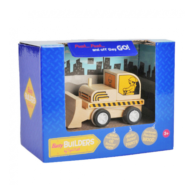 はたらくくるま工事現場シリーズのダンプカーの木製玩具です。EN71規格で、環境に優しいバーチ合板と非毒性塗料を使用しているので、お子様にも安心して遊んでいただけます。また、手で前に押すように走らせ、手を離すとしばらく走り続けます。