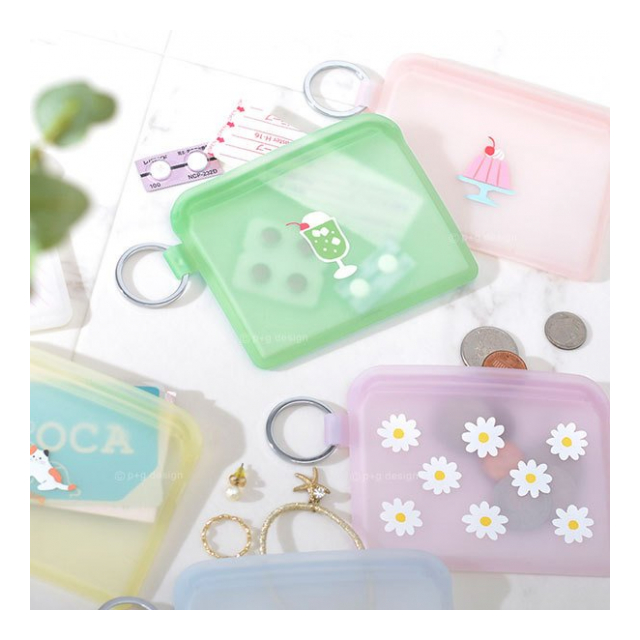 ・透明感のあるシリコーン素材で仕上げた、フラットデザインのミニジップポーチ。