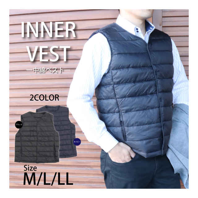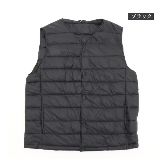 メンズ Vネック中綿ベスト ブラック M/L/LL