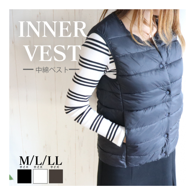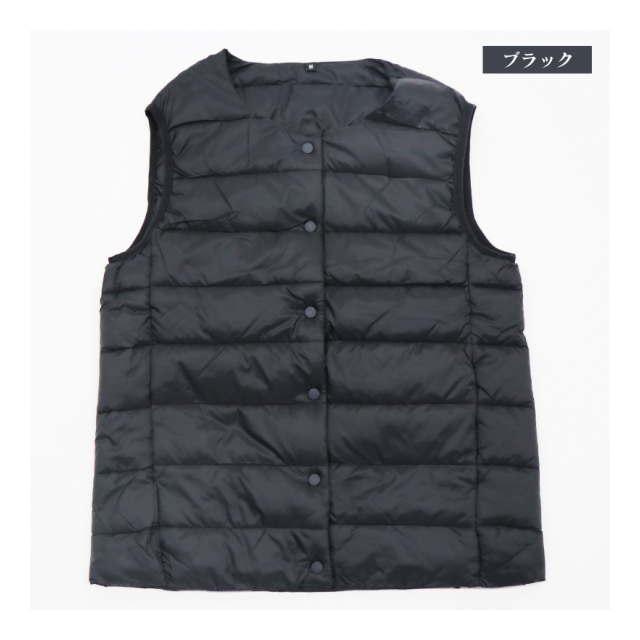 レディース ラウンドネック中綿ベスト ブラック M/L/LL