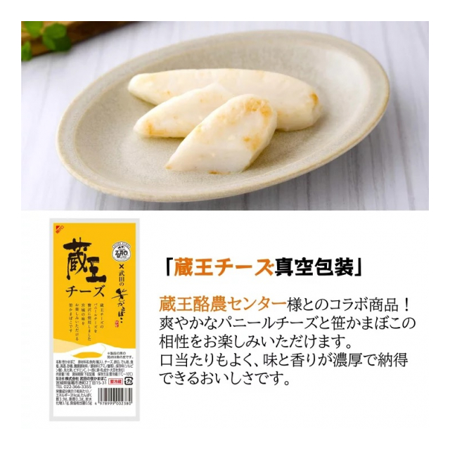| 武田の笹かまぼこ 蔵王チーズ 笹かまぼこ 真空包装 7枚 [JAN: 4978999002380] | 20 | オープン価格 | ログインすると表示 |
