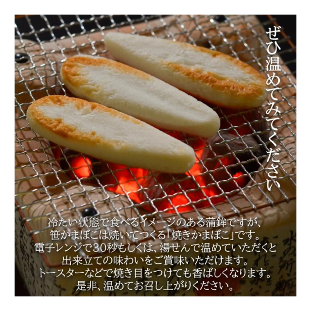 笹かまぼこは、原材料に最高級ランクのスケソウダラすり身を使用し、伝統の石臼製法により、職人が丹精込めて煉り上げることで、豊かな歯ごたえを実現しています。