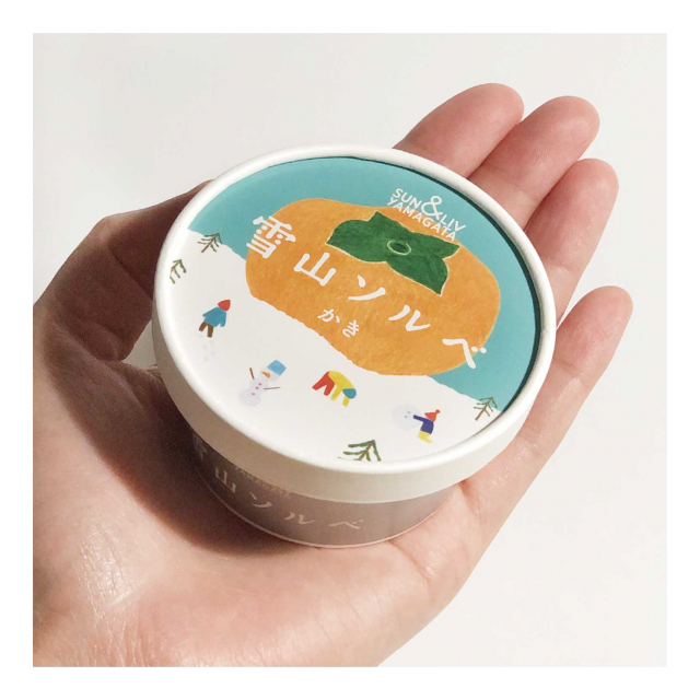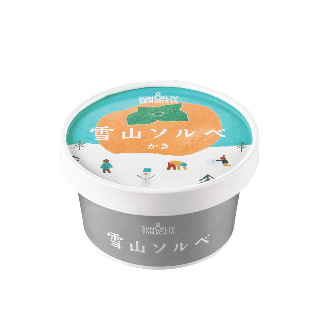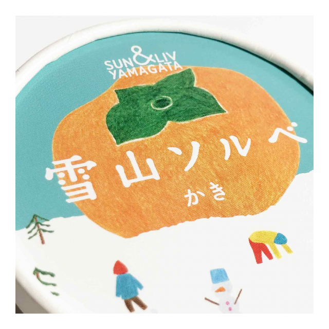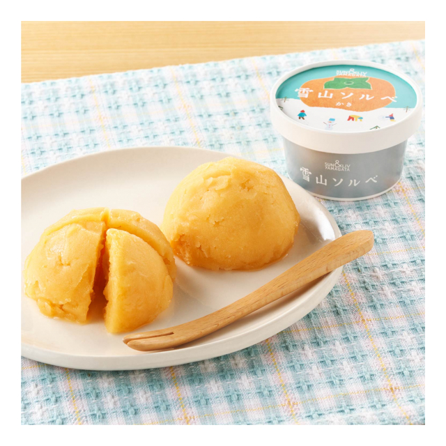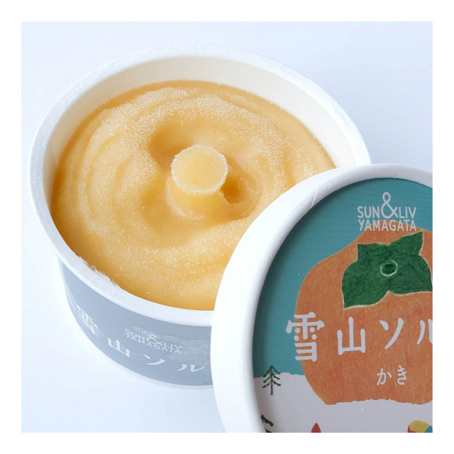 山形の秋の味覚「庄内柿」の果汁をたっぷり70%使用したソルベ。