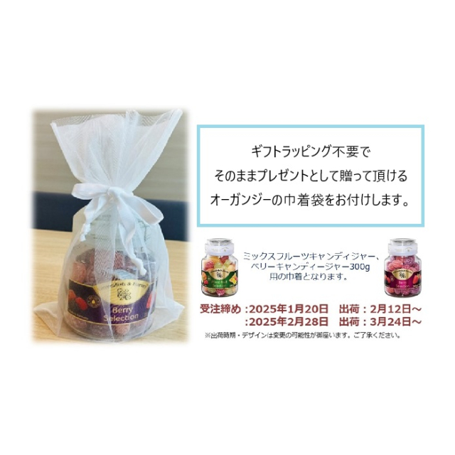 | 内容量 ・ミックスフルーツキャンディージャー<966g> ・ミックスフルーツキャンディージャー<300g> ・ベリーキャンディージャー<300g> |
