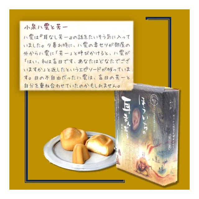 小泉八雲の怪談「耳なし芳一」にちなんだ耳の形のまんぢう。