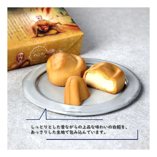 しっとりとした昔ながらの上品な味わいの白餡を、あっさりした生地で包み込んでいます。