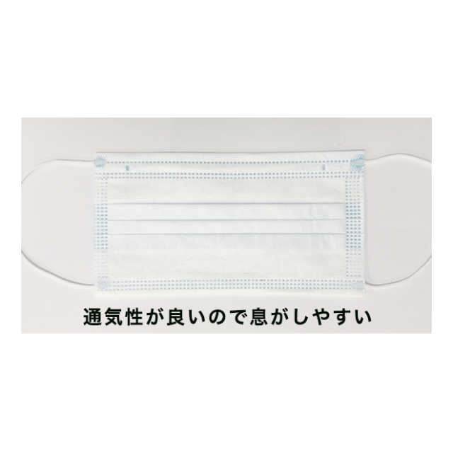 3層構造のサージカルマスクで、2層目に細菌・花粉などの微粒子を95%以上カットする特殊フィルターを採用しております。