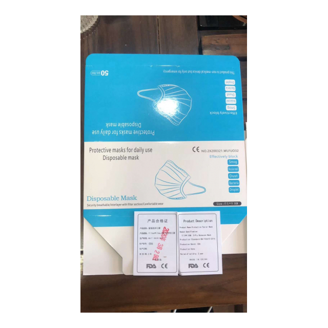 3層構造のサージカルマスクで、2層目がナノ加工で細菌・花粉などの微粒子を95%以上カットする特殊フィルターを採用しております。FDA及びCE取得済み。