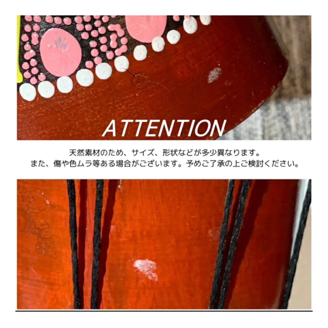 | ハンドメイドで天然の素材を利用しておりますため、1点ごとにサイズが若干異なります。 防水・撥水加工はされておりません。 こまかなキズや欠け等、また置いた時に安定感に欠ける場合などがございます。予めご了承の上お求めくださいませ。 |