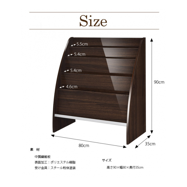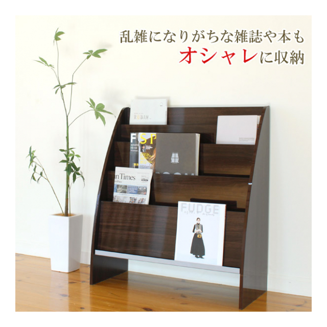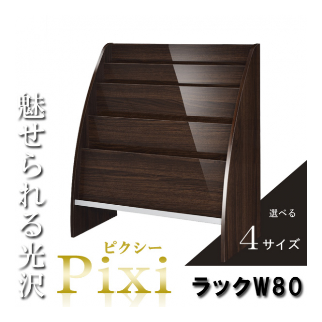 選べるサイズ×カラー!鏡面仕上げの雑誌ラック【Pixi】 ピクシー 幅80cm 奥行35cm ダークブラウン