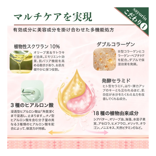 ●お肌を潤す:うるおうトリプルヒアルロン酸。うるおいを与えるだけではなく乾きにくい素肌へと導くスキンケア。大きさの違うヒアルロン酸で