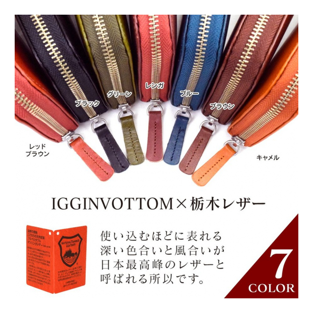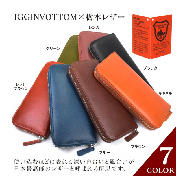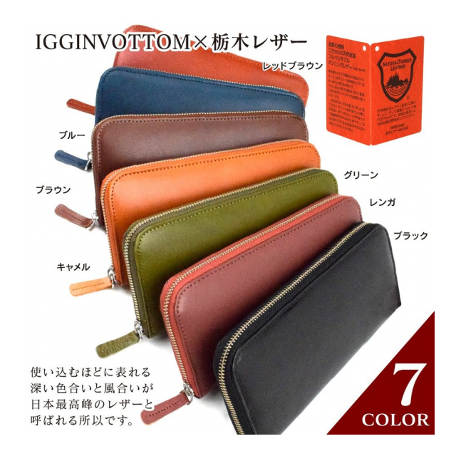 栃木レザー 長財布 本格派 本革 ブランド ラウンドファスナー 天然皮革 IGGINBOTTOMx栃木レザー