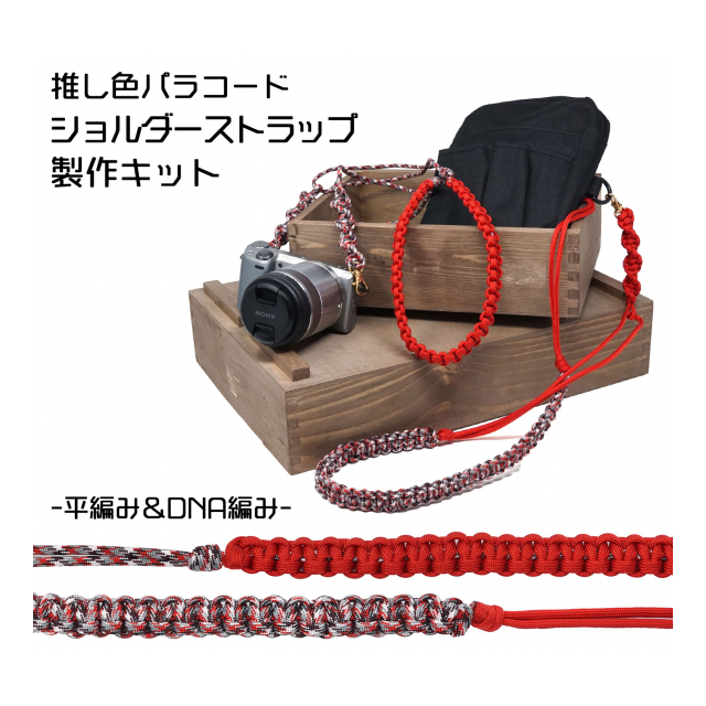 ●アメリカ製ナイロン・パラコードを使って、簡単にショルダーストラップが作れる、製作キットです。●作り方レシピと動画のQRコードがセットになっているため、初心者の方でも簡単に、パラコード・アクセサリーを作ることができます。●パラコードはアメリカ製、パーツは日本製にこだわってお作りしております。