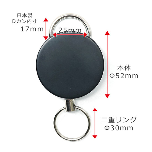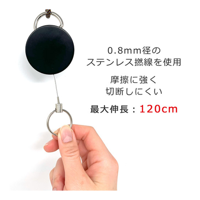 | ●全長:約12cm●ワイヤー最大伸長:120cm●巻き戻し能力:120g●全部伸出時荷重:2kg●ワイヤー:ステンレス撚線●材質:プラスチック、ステンレス |