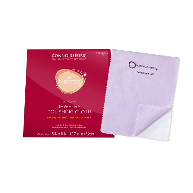 2枚重ねのポリッシングクロスが磨くだけで驚きの輝きをよみがえらせます。内側の白白の布には独自の金・銀製品用の洗浄剤と曇りと止め剤を含んでおり、汚れ落としに最適です。磨きには外側の薄紫色の布をお使いください。
