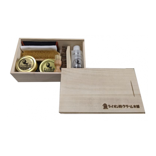 | セット内容:エクセレントリキッドクリーナー、エクセレントクリーム、エクセレントワックス、馬毛ブラシ、豚毛ペネトレイトブラシ、豚毛ブラシ、グローブテレンプ、、磨き用クロス |