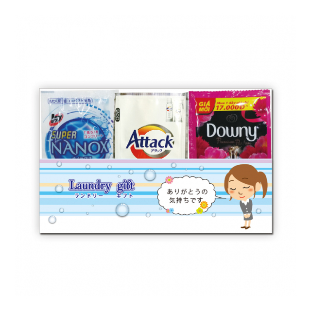 | デザイン台紙袋入、名刺ポケット付 ライオンナノックス16g、アタックゼロ10g、ダウニー20ml 5色取り混ぜ |